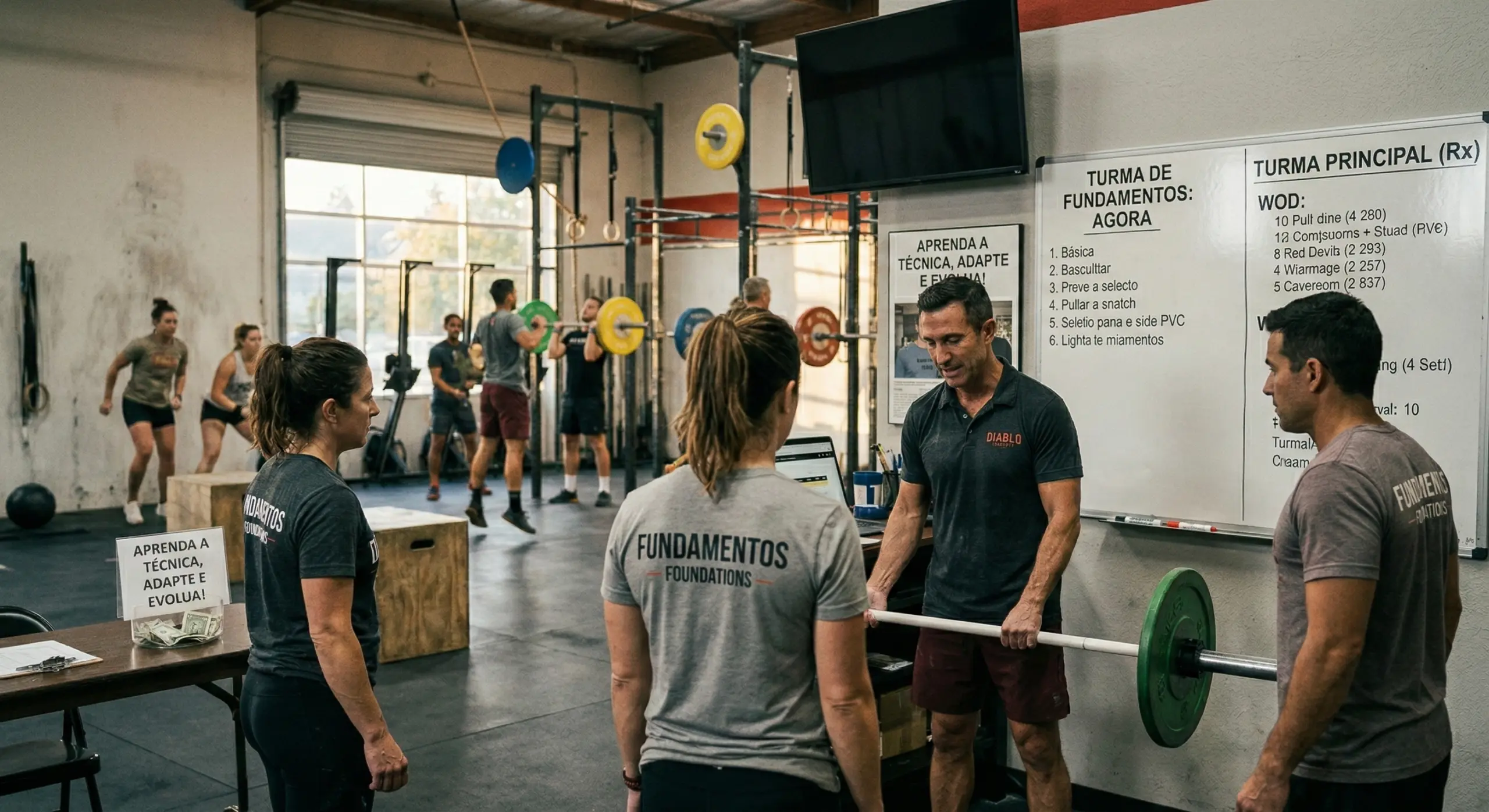 O Crossfit é um treinamento de alta intensidade e pode ser muito desafiador para iniciantes. Por isso, é importante adaptar o treinamento ao seu nível de condicionamento e capacidade física. Não se preocupe em acompanhar os outros atletas do box logo de início. Você pode começar com exercícios mais leves e aumentar a intensidade gradualmente, à medida que seu condicionamento físico melhora.